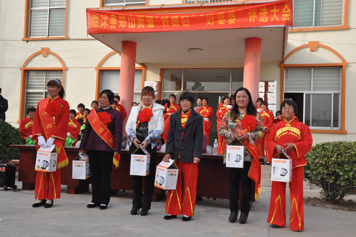 临沂网讯:“三八”妇女节前夕,临沭县郑山街道在省级文明村——罗屯村召开了“好媳妇”“好婆婆”评选大会,宣传委员王艳参加。该村的秧歌队、腰鼓队、龙凤棍队先后登场表演,优美的秧歌、热烈的鼓点、欢快的音乐、罕见的龙凤棍以及红衣裳绿绸缎,为村民们营造了欢乐祥和的气氛。