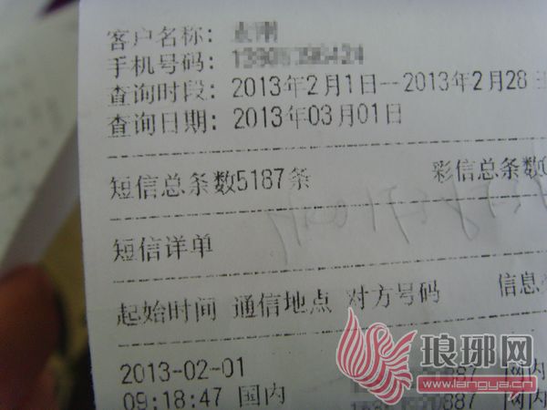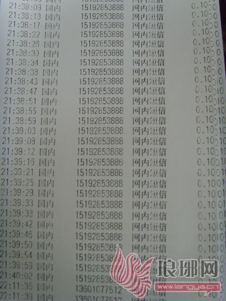 记者在账单上看到,袁先生的手机发出的短信多达5000余条,其妻子的手机发出的短信也有1100多条。随后记者随机从中抽出一个电话号码发现,发给同一个电话号码的短信竟有166条,平均每次的时间间隔在五秒左右。