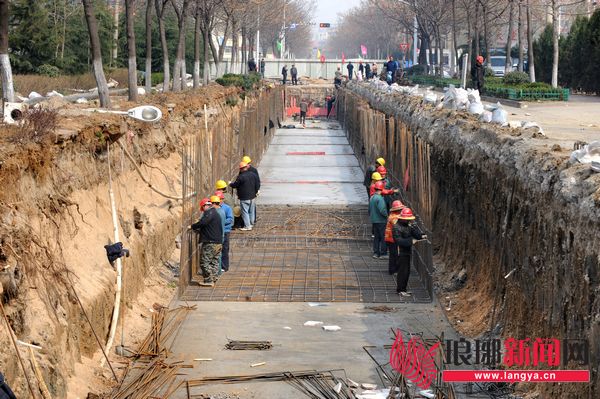 15日,记者在位于蒙山社区南门的施工现场看到,在深达2米多的施工坑道中,工人们正忙着绑扎钢筋,宽1.6米的方涵即将开始混凝土浇灌作业。市城市排水维护管理处生产计划科科长刘继昌介绍说,过去兴隆路上只有直径60厘米的排水管道,而且年久失修,淤塞严重,每逢降水都极易出现积水。而新建的排水方涵高度达2米,宽度从1.6米至4米不等,排水能力增强数十倍。该工程竣工可解决北至金雀山路、南至陷泥河、东至开源路、西至蒙山大道范围内的排水问题。