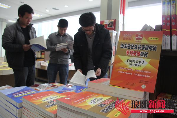 据临沂新华书城的工作人员介绍,公务员招考简章公布以后,公考辅导资料的销量直线上升。诸多类型中,模块分析、真题试卷等辅导资料最受青睐。