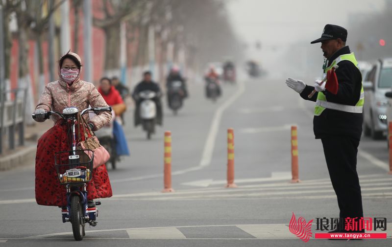 3月18日下午,一场大风卷带着风沙再次入侵临沂,让路上的行人有点措手不及,纷纷遮头掩面匆匆穿行。受阵风影响,临沂刚刚暖起来的天气将再次降温,气象部门预报,20日夜间到21日早晨有霜冻,气温0~13℃,请市民注意保暖。 摄影 记者朱武涛