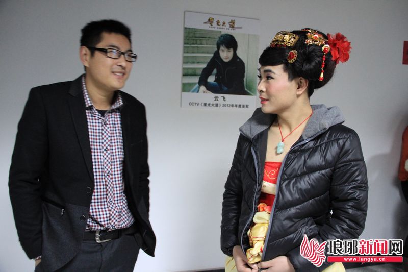 来自辽宁锦州的吴旗,是个22岁的小伙子(右),乘坐22小时的火车赶到临沂,参赛曲目是《好人好梦》和《新贵妃醉酒》