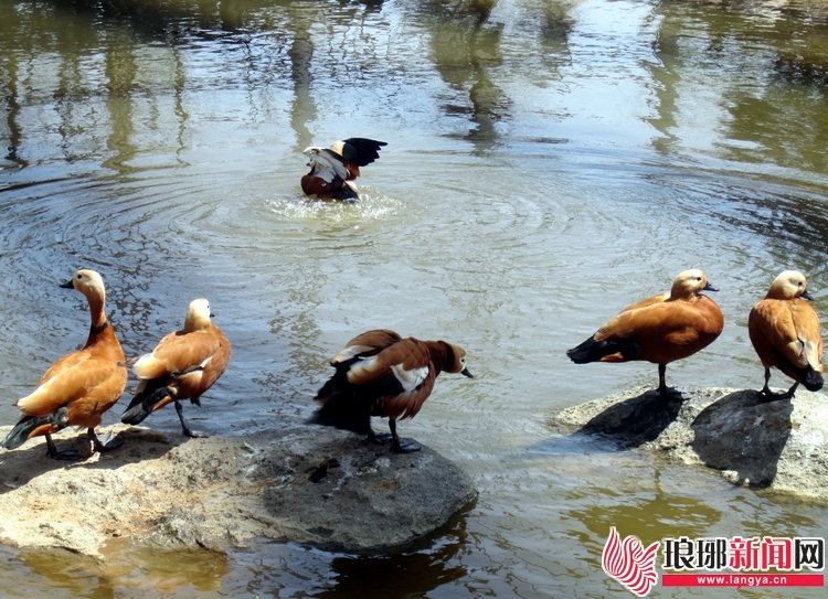 临沂动植物园中的赤麻鸭。 记者 孟凯 刘青 摄