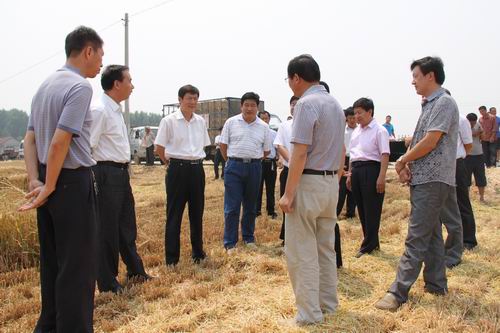 6月15日,省农机办监督管理处贾建国到我市沂南县察看小麦秸秆切碎还田工作。