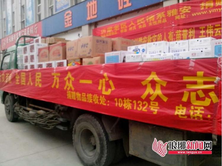 琅琊网4月23日讯(记者 胡雪莹 刘青 孟凯 王逸群)23日下午5时,沂蒙义工联合会第一批物资开始装车,募捐物资金额近3万元,预计25日可到运抵灾区。