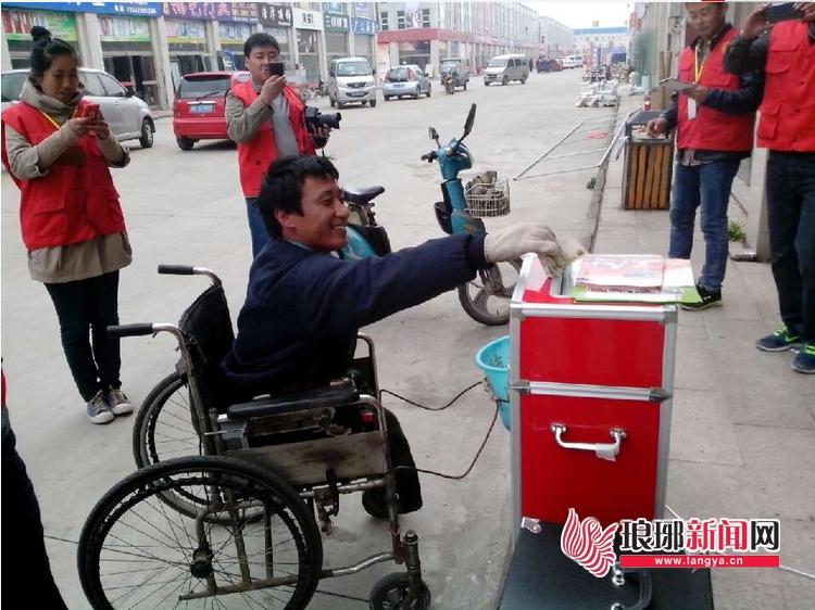 一位残疾人参与到捐款中。