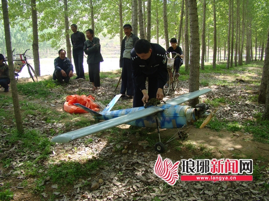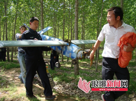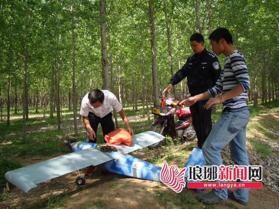 当日下午13时许,临沂市蒙阴县公安局野店派出所接到110指令称,据群众反映有一架飞机坠落在其辖区里的东门村,要求民警前去处置。接到报警后,民警立即驱车赶到该村,并在村干部的带领下来到现场。现处在一片空旷地带,周围是杨树林,中间是一片花生地,而所谓的飞机就落在花生地与杨树林的衔接地段。在疏散围观群众保护好现场后,经现场勘查,民警发现这是一架类似无人机的单翼飞行器,其应急降落伞已经打开,除一侧机翼有点擦轻微痕外,整个机身没有受到大的损伤。