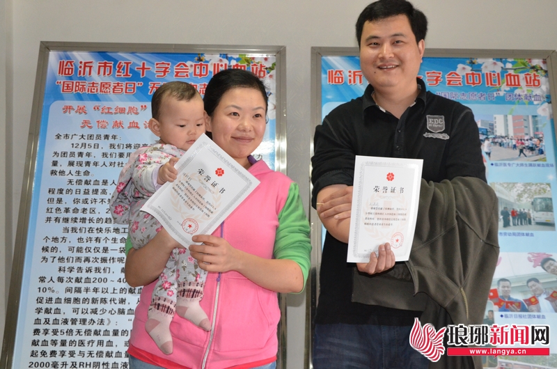 8日,市民徐欣欣、孙洪伟夫妇向记者展示捐献造血干细胞荣誉证书。