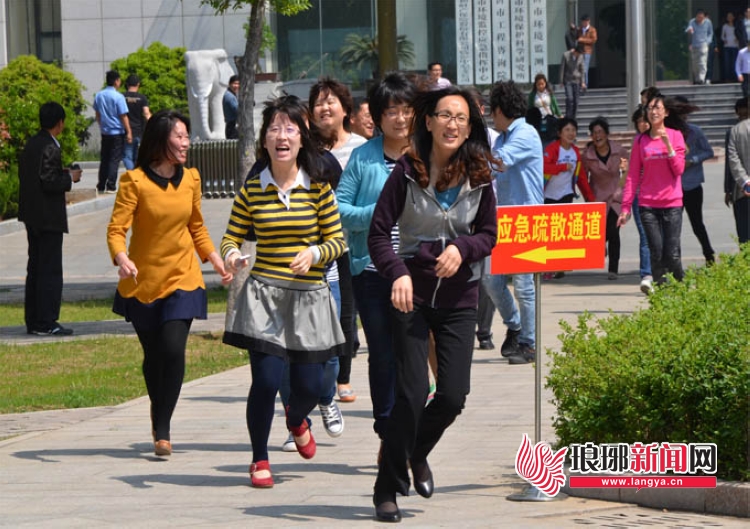 5月10日上午,临沂市环保大厦楼前广场举行市政府机关工作人员地震应急疏散演练活动。