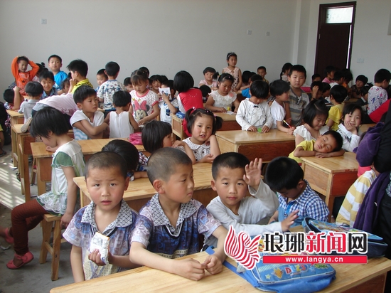 当日下午2点30分,上课铃刚刚响起,记者走进柞城小学教学楼一楼西头的教室,发现上百名孩子将这间60平方米的教室挤得满满当当,每一张课桌前围坐着4个孩子,没有座的孩子就蹲坐在墙角处。由于孩子们天性好动,教室内已是乱成一团。见到记者到来,幼儿园的两名老师向记者介绍起情况。“我们幼儿园是1994年在当时学校领导的允许下开的,这些年一直都是在柞城小学里,我们3个老师已经干了近20年。去年开始危房改造后,我们也和小学一块搬到了附近的一家保健品厂,可教学楼建好后,学校突然关门不让我们来了,但我们还要正常教学。没办法,5月20日上午,我们几个老师在学校门口一个个地把孩子从紧闭的大门上递过来,和小学学前班的30多个学生共用一间教室。”幼儿园老师赵其冬告诉记者说。