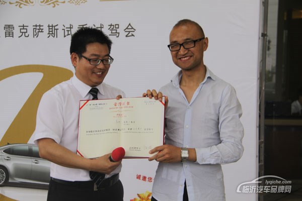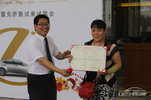 活动最后,临沂和凌雷克萨斯4s店为参加本次试驾会活动的嘉宾颁发了证书,并且从现场抽出一名幸运嘉宾获得精装雷克萨斯车模。“势在必得、驾享人生”临沂和凌雷克萨斯试驾会在愉悦,收获的氛围中圆满结束。
