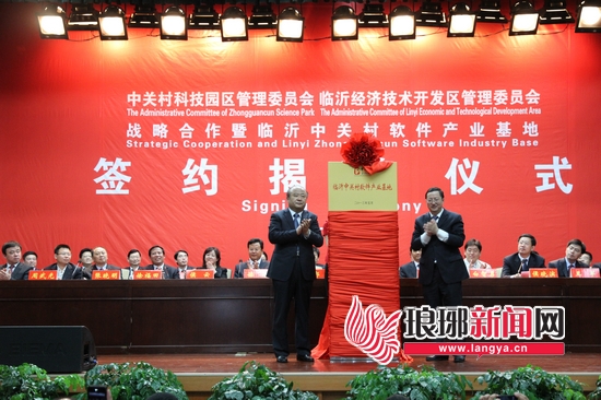 27日上午,中关村科技园区与临沂经济技术开发区战略合作暨临沂中关村软件产业基地签约仪式举行,标志着临沂与中关村的合作迈入了新的发展阶段。中关村管委会党组副书记、主任郭洪,市委书记、市人大常委会主任张少军分别讲话并为临沂中关村软件产业基地揭牌。市领导徐涛、杜德昌、徐福田、侯晓滨等出席。
