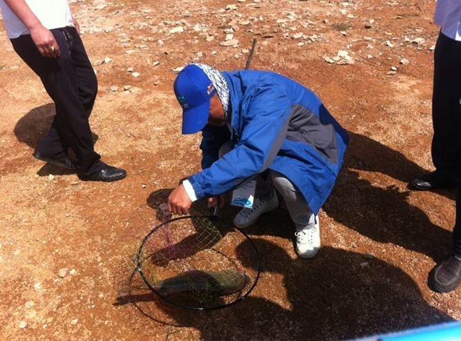 2013年6月2日早上8点,在美丽的天马金岛度假村这个神奇的岛屿上,来自“天马岛杯”莒南天湖搏大鱼比赛的各个钓鱼队伍有条不紊的进行着。而在山明水秀的金岛风景区热闹非凡,齐聚在宁静的天湖湖畔,来自济南代表队的李先生首先打破了晨时的寂静,他在自己的方位钓出了一条重达30.4斤的草鱼,此消息立刻传遍了整个赛区工作人员。