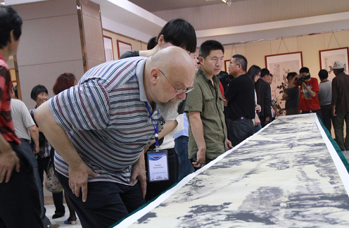参加临沂校庆的中外嘉宾参观王小古艺术馆