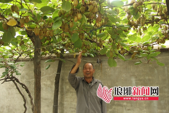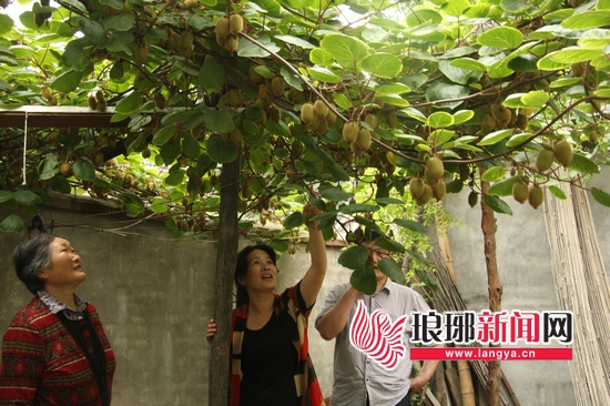 2003年春天,刘启海埋猕猴桃果皮的地方发出了两棵小树芽。“我们这里很少见猕猴桃树,当时我以为是两棵小楸树,就把他们移植到了靠墙处。后来发现它像葡萄样越长越快,越长越大,后来我就搭了个架子,像管理葡萄样去修剪管理。没想到这两棵树不但长成了大树,还开花结果了。”刘启海高兴地说。