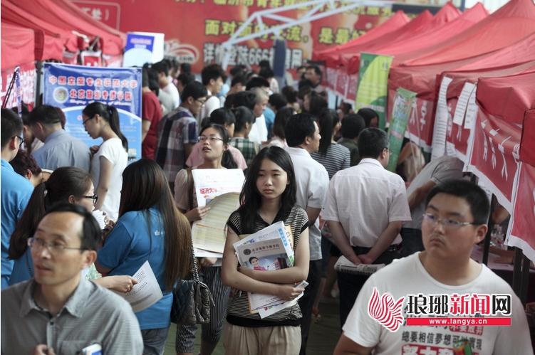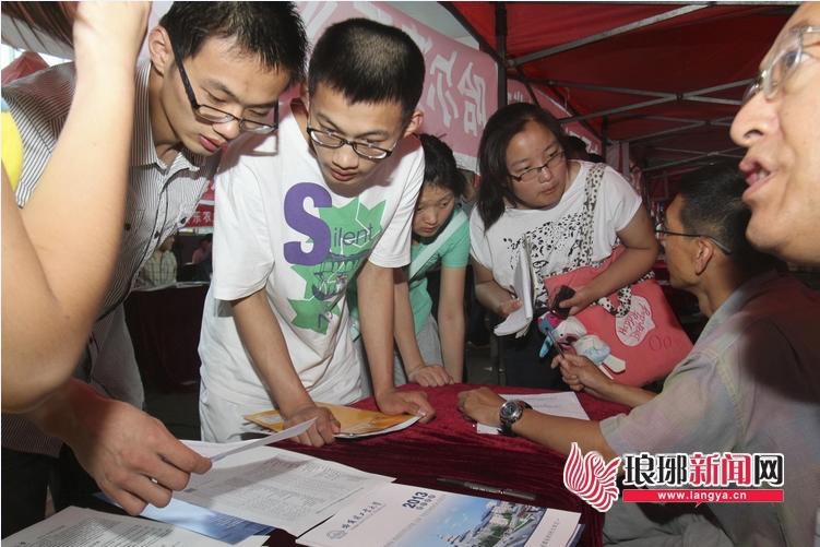 26日,2013年山东高考招生咨询会在临沂市体育馆举行,万余名怀揣高考成绩的考生和家长来到现场咨询,近百所高校的招生办工作人员面对面为考生和家长答疑解惑。