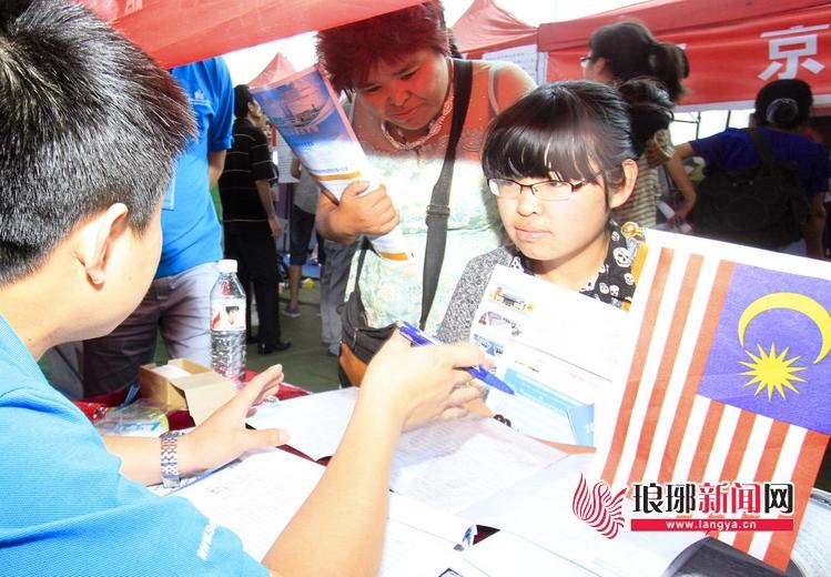 26日,本报主办的山东高考招生咨询会现场吸引了上百家高校,在众多高校当中,不乏一些国外留学机构,他们与诸多国内高校一起抢本地生源。记者了解到,现在留学也不再是高考生考不上大学的一条“退路”,而是另一种求学选择,甚至还成为一些高分学生的首选。