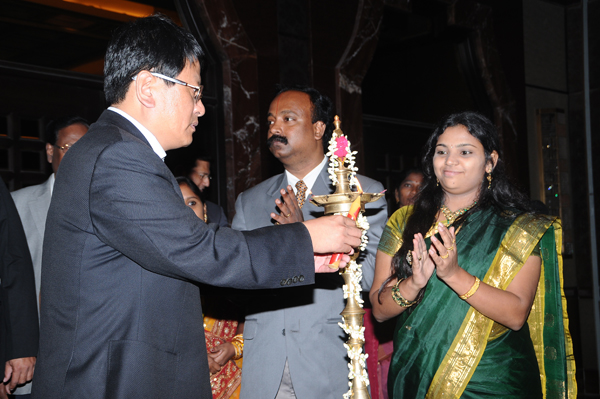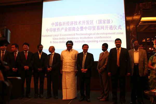 2013年7月2日上午,临沂经济技术开发区“中印软件产业招商会暨中印贸易网开通仪式”在印度金奈圆满举行。市人大常委会副主任、开发区党工委书记徐福田、市经济和信息化委员会主任王新生、临沂经济技术开发区招商局局长朱俊合、临沂经济技术开发区城市建设投资有限公司董事长何中华、拓普网络公司总经理王岚保、印度SRM集团常务董事玛尼瓦纳、首席执行官拉克西米出席仪式。