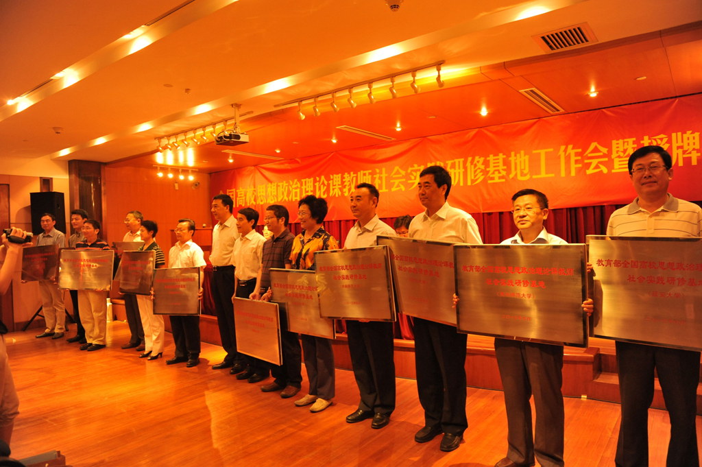 临沂网讯 7月9日,全国高校思想政治理论课教师社会实践研修基地工作会暨授牌仪式在上海中共一大会址举行,临沂大学作为全国12个基地之一接受授牌,并作为两家发言单位之一在大会上作经验交流,临沂大学也是我省唯一一个获批的高校。教育部社科司司长张东刚代教育部副部长李卫红作书面讲话,山东省委高校工委副书记黄琦、我校党委书记丁凤云代表山东省及山东省唯一一所获批高校出席会议。