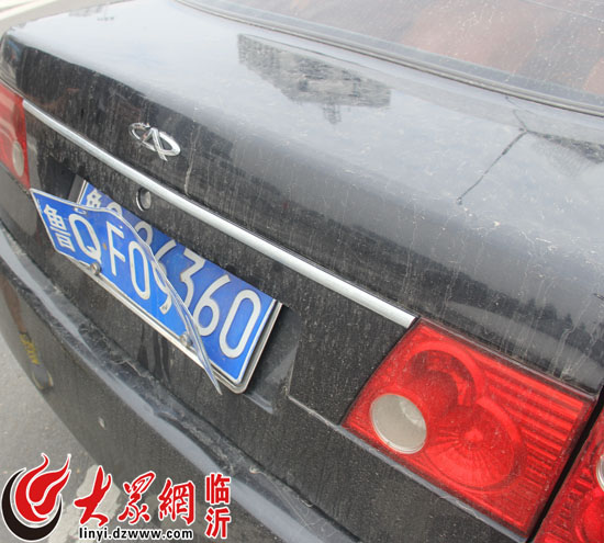 7月15日上午,临沂市交警支队直属三大队根据市民举报,查获一涉嫌套牌黑色奇瑞轿车, 该轿车同时悬挂三种不同号码车牌,堪称最牛“牌”车。