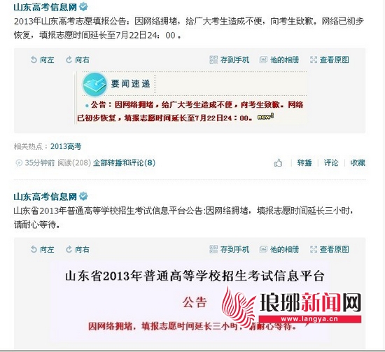 临沂一中老师王庆胜告诉记者,二本志愿牵扯全省20多万考生,数量巨大,而填报时间又短,考生集中填报才会造成系统崩溃。22日下午,省招考院先后两次延长填报时间,第一次延长至晚上8点,第二次延长至22日24点。“如果填报时间能有2—3天的时间,可能就会避免这种状况了。”王庆胜分析说。