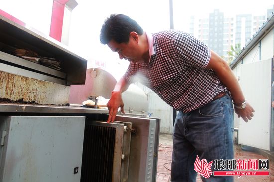 店主介绍过滤油烟的净化设备。