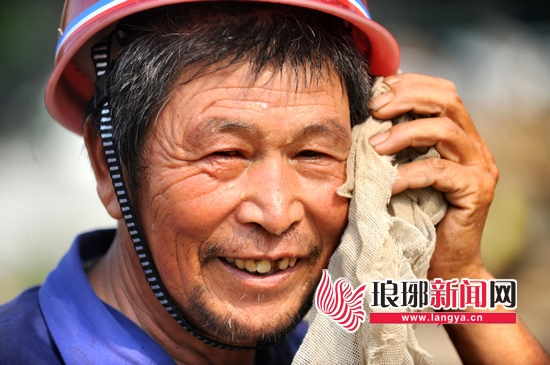 热了擦把脸,喝口绿豆汤。李斌和工友们就这样对付暑热。李斌说,他一天喝下的水足有五六斤,即使这样,干活时还是会觉得很渴。他还透露了自己的收入,“每天200块吧,对这个数我很满意了。”李斌笑着说。