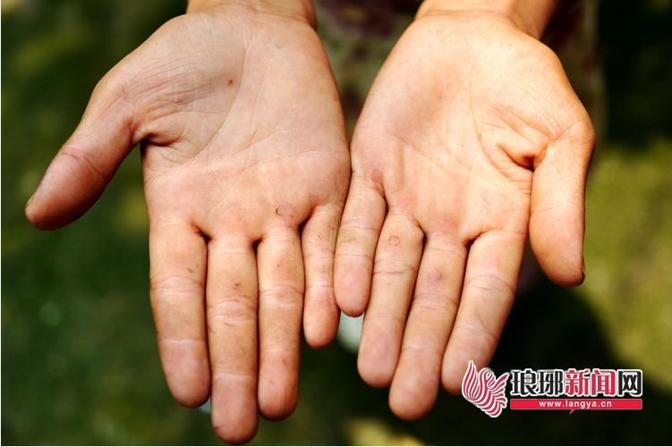 因为要帮着堂哥干农活,张玉欣的手上满是水泡和割伤。