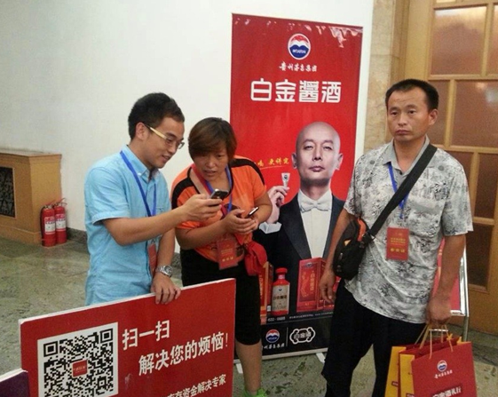 现场众经销商对“消化库存“的模式与酒到家商城非常感兴趣,纷纷围住马龙刚先生与石歌先生,热情地交换名片与提问,甚至有的当场就要开始谈合作。因为无法一一解释,石歌先生拿出酒到家的微信二维码,建议现场的观众扫描关注,可以多了解些酒到家的运作方式,探讨合作的可能,会议结束后会场所有使用微信的经销商朋友都成了酒到家的微信粉丝,探讨合作共赢。