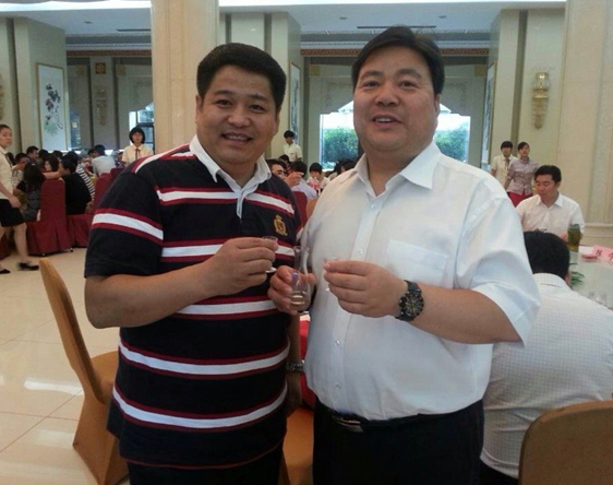 (顺和集团董事长马龙刚与CEO陈宁举杯庆祝合作成功)