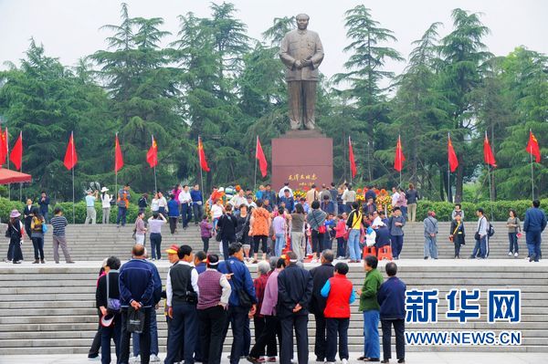 众多游客云集湖南韶山毛泽东铜像广场,参观瞻仰,缅怀伟人(2011年5月24日摄)。新华社记者龙弘涛摄