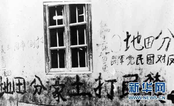 这是1932年中央红军攻克漳州后写的“打土豪、分田地”的标语。新华社发