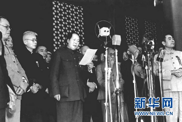 这是1949年10月1日,毛泽东主席在北京天安门城楼上向全世界庄严宣告:“中华人民共和国中央人民政府今天成立了!”。 新华社发