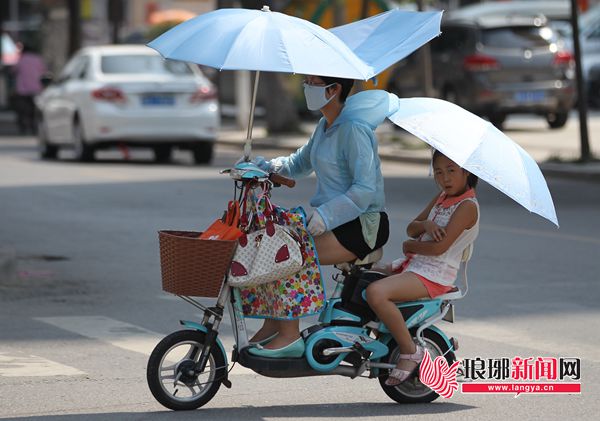 记者从市气象台了解,6日临沂的最高气温达到了36.1℃,仅次于7月11日出现的36.6℃的今年最高气温值,但据市民实测爆料,市区部分地区的温度已经超过了40℃。在炎炎烈日的炙烤下,中午时段,大街小巷上行人稀少,即使有也大多是用遮阳伞、太阳镜等防暑装备全副武装起来。