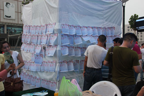 未参与相亲的读者或网友可登陆山东商报临沂站新浪微博或者到和谐广场总服务台继续参与报名,填写单身信息卡。本次活动一直延续至13日七夕晚上,所有单身信息都在和谐广场中庭七夕相亲活动背景板上体现。