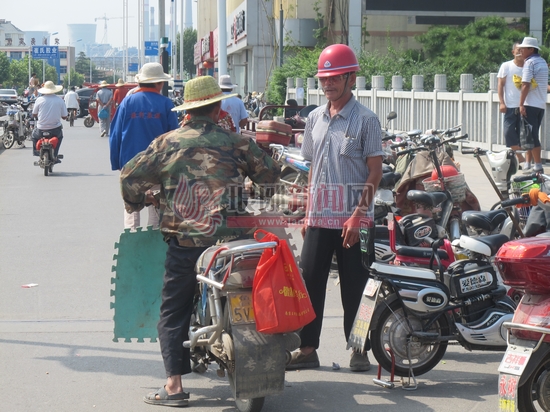 一些等活的工人三三两两地站在路上闲聊,一旦有顾客上门,大家便一涌而上,顿时将整条道路彻底堵死,一些骑车或步行路经此地的市民只能绕道而行,甚至加入了旁边机动车的行列,不禁让人捏把汗。