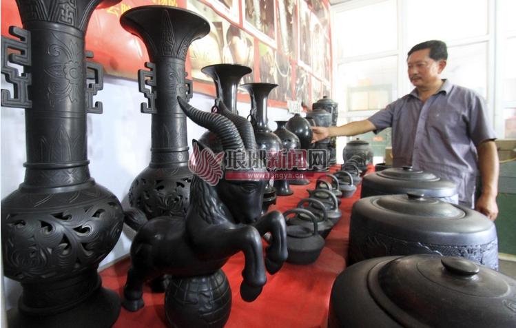 一件件黑陶制品古色古香。