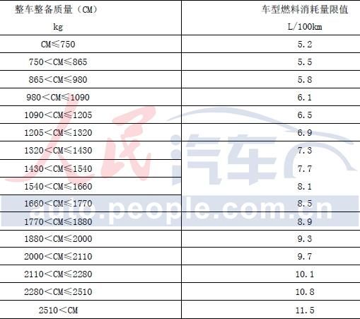 乘用车燃料消耗量的限值