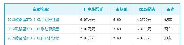 购路盛E70最高优惠3700元 现车充足