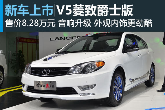 新浪汽车讯 在8月29日开幕的2014成都车展上,东南汽车宣布V5菱致爵士版上市,新车会同时在东南汽车天猫旗舰店上开卖,售价为8.28万元。V5菱致改款车型爵士版是一款针对年轻时尚人群设计的个性车型,外观内饰更加劲酷,配备上新增智能一键启动、前驻车雷达、车门LED迎宾灯、Pioneer先锋6维环绕立体扬声器。