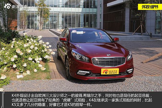 外观方面,东风悦达起亚K4量产版延续了之前概念车的稳重。细节方面,新车依旧采用了家族化虎啸式的进气格栅,并采用横竖交错镀铬材料,更显大气。同时,柳叶式前大灯、大气的四边形尾灯也都是非常吸引眼球的设计。