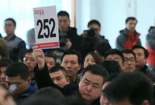 1月25日,手持“252”号号牌的竞拍者拍得第一辆中央和国家机关公车改革取消车辆。