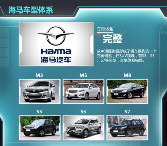 至此海马汽车从A0级到B级形成了轿车系列的一个完全谱系,在SUV领域,有S3、S5、S7等车型,这在自主品牌里相比,车型体系更加完整。从价位的区间也好,从整个产品的功能需求也好,都是比较完整的。随着一系列新车型的推出,海马的销量有望进一步提升。