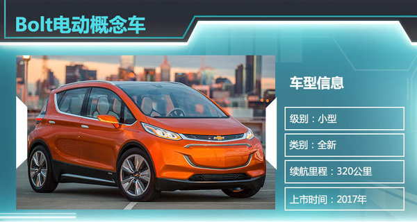 继雪佛兰Spark电动车和Volt沃蓝达两款电气化产品之后,通用汽车在2015年北美车展上推出了雪佛兰品牌全新Bolt电动概念车。通用汽车首席执行官玛丽·博拉(Mary Barra)表示:“Bolt电动概念车将重塑电动车市场格局,其市场定位是面向普通大众而非小众群体。”近日,网通社从相关渠道获悉,通用汽车计划于2016年10月起投产雪佛兰Bolt纯电动车,新车预计将在2017年正式上市,其续航里程达到320km,上市后将与宝马i3等同级别车型相竞争。