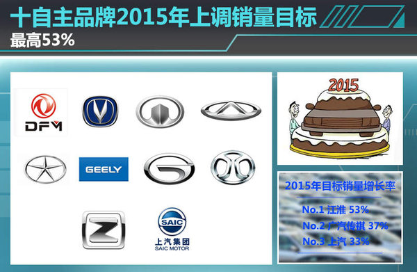十自主品牌2015年上调销量目标 最高53%