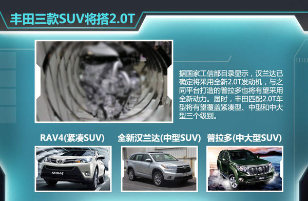 据广东省发展和改革委员会此前公布的相关审批文件中显示,丰田全新2.0T涡轮增压引擎将有广汽丰田发动机工厂进行投产,并且年产能为10.2万台,作为广汽丰田的重磅战略车型,全新一代汉兰达也将使用新开发的2.0T增压发动机。此外,与汉兰达同平台但定位更高的普拉多也将有望采用新引擎,进一步增强该车竞争力。