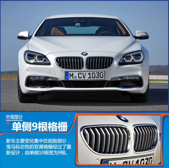 全新宝马6系将于4月20日在上海进行国内首秀,其中将包括6系Convertible(敞篷版)、6系Gran Coupe(四门轿跑版)以及6系Coupe三款车型。作为6系车型的中期改款车型,新车在外观、内饰等方面进行了诸多改进。随着新车在此次上海车展亮相,该车有望在年内引入国内进行销售。