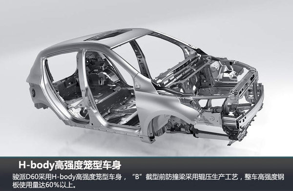 在车身结构上,骏派D60采用H-body高强度笼型车身,“B”截型前防撞梁采用辊压生产工艺,整车高强度钢板使用量达60%以上。且前防撞梁系统与其他安全系统有效匹配,在车辆发生碰撞初期可吸收大部分冲击载荷,并将受力传导到机舱边梁、侧围、地板等部位,保证驾驶舱的形状不变。在安全配置上,骏派D60配备了六个安全气囊、前排预张紧式安全带、后排三个三点式安全带、防鞭打头枕、可溃缩转向管柱等安全装置。