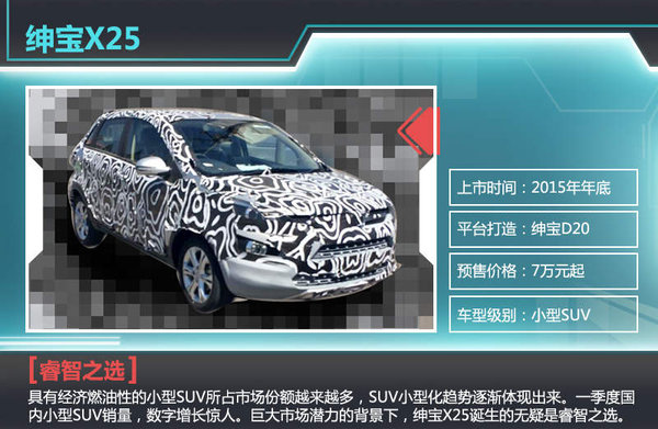 绅宝X25定位为小型SUV,基于北汽E系列绅宝D20而打造。目前SUV市场热度仍旧持续升温,较高的增长率导致国内厂商纷纷转战该细分市场。具有经济燃油性的小型SUV所占市场份额越来越多,SUV小型化的趋势逐渐体现出来。回首一季度国内小型SUV销量,数字增长惊人。巨大市场潜力的背景下,绅宝X25诞生的无疑是睿智之选。