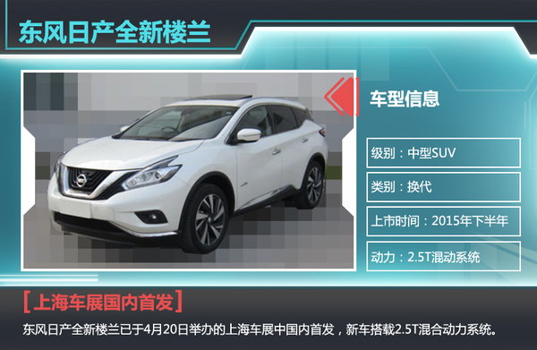 2014年,东风日产累计销量95.4万辆,较2013年增长3%,而2015年其销量目标则是100万辆,为了完成销量目标,东风日产对旗下现有车型进行更新换代,年内全新楼兰和逍客的投放以及蓝鸟的加入将为东风日产冲击100万销量奠定坚实的基础。